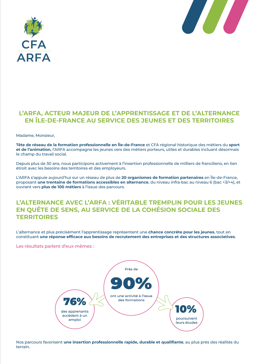 - Près de 90 % des apprenants à l’ARFA ont une activité à l’issue de leur formation