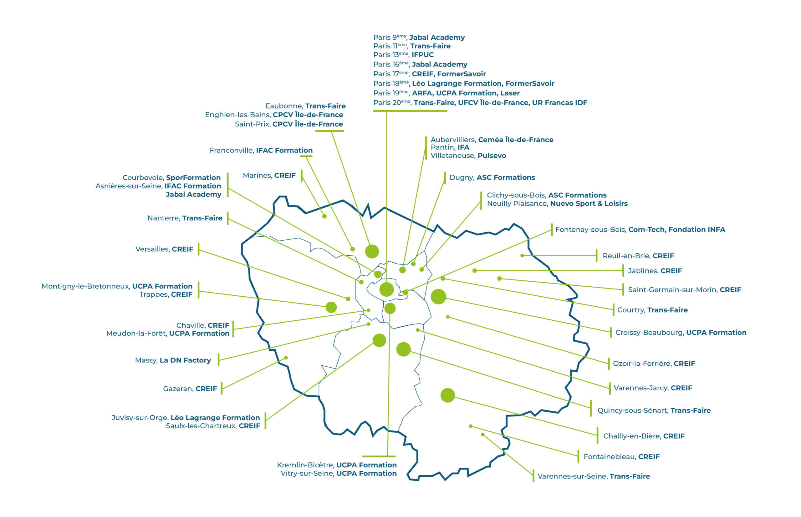 Les formations se déroulent au sein des 8 départements franciliens dans un de nos 50 sites de formation partenaires.